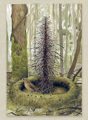 體貼的雄性園亭鳥 bowerbird(產於澳洲和新幾內亞),