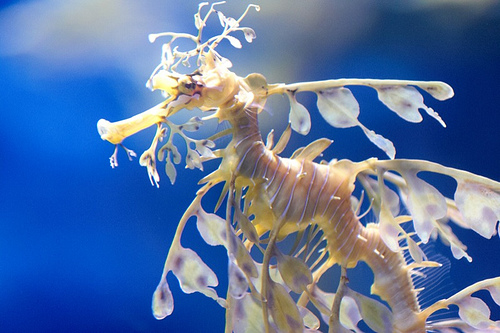 葉海龍的鰭長得像葉子覆蓋全身。這些凸起的葉子只是擬態。它們的葉狀鰭幾乎透明,來回動蕩使海龍像可以前進的海藻一樣。