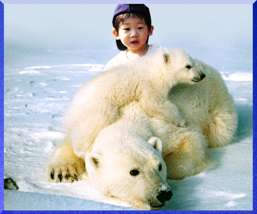 北極熊以捕食海豹、魚和海鴉為生,擅於游泳。全身披著厚厚的白毛,包括耳朵和腳掌,僅鼻頭有一點黑。