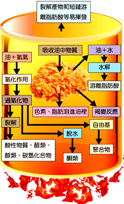 油加熱過程,會不斷進行水解、氧化、裂解、聚合等化學反應,使得其中致癌物質越來越多。