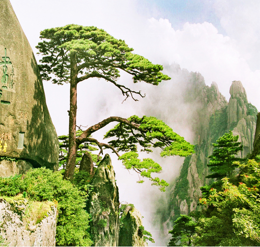 迎客松是黃山的地標性景觀,黃山松的傑出代表,號稱華夏第一松。