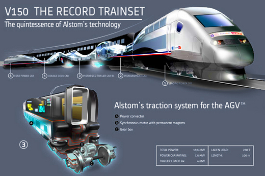 法國 V150 打破高速子彈列車速度,時速達 574.8 公里(357 英里),成了目前世界上最快的軌道列車,由 Alstom Transport 公司、Reseau Ferre de France,以及法國火車廠商SNCF共同研發。