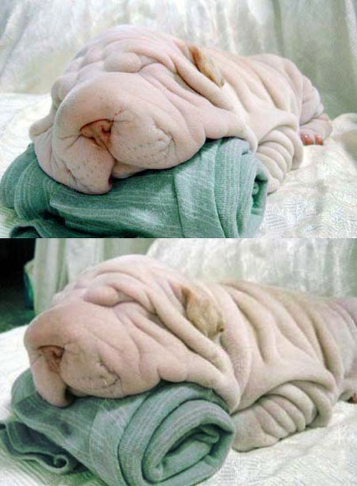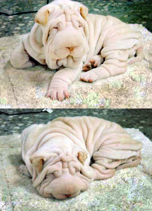 沙皮狗寶寶皺折會佈滿全身,但成年的沙皮狗頭部和頸部會變得緊實,好像做了電波拉皮。