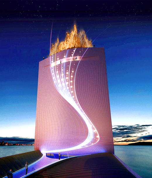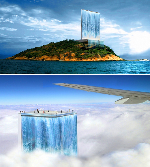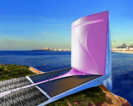 約熱內盧的世運塔,由瑞士建築設計公司拉法所設計的〈日光城觀景太陽能瀑布塔〉是從海空進入遊客的歡迎標誌。