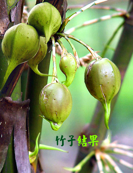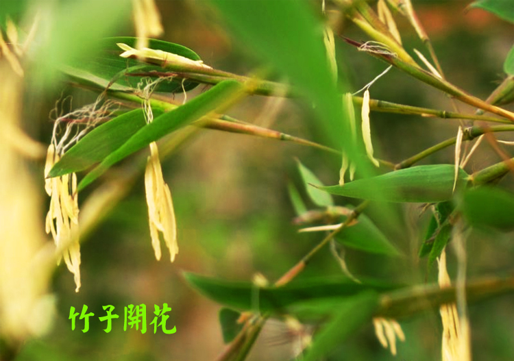 我們常見一根根筆直的竹子,節上互生分枝,分枝上再生小竹枝,而翠綠的竹葉就從小竹枝上長出,一簇簇的竹子茂密的長在一塊兒,形成景色清幽的竹林。 竹子雖不像松、柏樹一樣千年長壽,但除非生長的環境條件變差,通常可以活上好幾十年。如果在竹枝間發現一些纏繞在一起像藤蔓一樣的東西,同時,竹葉的顏色不再青綠,逐漸枯萎變黃,就表示這竹子要開花了。那些像藤蔓的東西,參雜了一些小小的細粒,形如稻穗狀,枯草般的色澤,那就是竹花了。 通常植物都會在它生命力最旺盛的時期開花,但是竹子的開花卻剛好相反,一旦開花時,正表示它的生命力逐漸走下坡了,是竹子生命快結束的徵兆。竹子在生命將盡的時候開花,是為了要留下一些種子,好延續後代。 竹子在要開花的前一年即不長筍,開花後一、二年內就乾枯死亡,但此時竹子的地下莖並沒有枯死,而落地的種子也會生根,經過 5~10 年後再重新長出幼苗。 竹子開花的週期很難預測,從 30 年到百年以上的都有,甚至有些種類的竹子沒有開花的紀錄。通常開出的小花凋零後,原本青翠的竹葉也會跟著枯萎,接著竹子便成批地死去。 竹子開花僅僅是自然現象嗎?竹一旦開花,鄰近的竹亦會相繼開花,造成大片竹林死亡,對一些以竹為主食的動物,勢必造成毀滅性的危機。首當其害的就是大熊貓。 科學家發現每逢旱災前夕,竹林便會大規模開花並枯萎,據說是因為竹能夠感應到土壤的一些變異,所以經散播種子遷移到適合的新土地,或在原來的地方等待適當的時候,如旱災過後。竹子的開花方式有別於其他植物,可分成 3 種: |