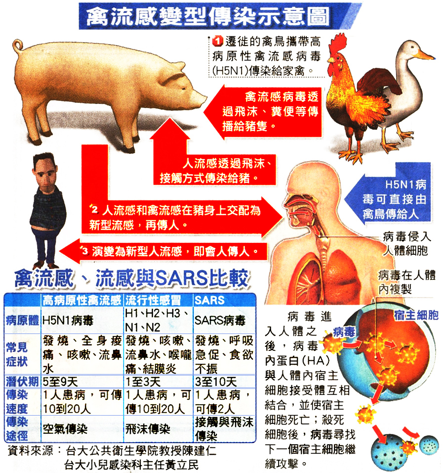 台大醫院小兒部感染科主任黃立民指出,H5N1 病毒雖屬禽流感,但在豬、老虎等動物身上都曾發現,「代表它是一種適應力很強的病毒,會持續重組基因」,醫界深怕它會從現今禽傳人,演變到人傳人的大流行。