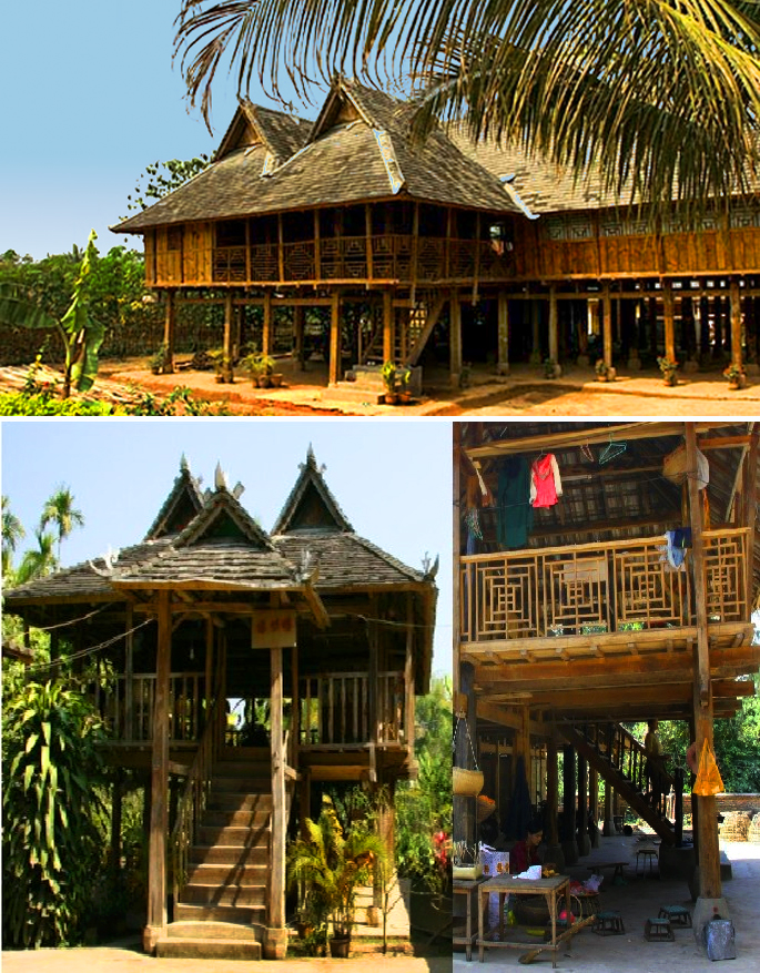 傣家喜歡住竹樓↑,涼爽通風,樓上住人、樓下養牛或堆放雜物。戶戶竹籬環繞,自成院落,村寨臨江傍湖,果樹掩映,鳳尾竹迎風搖曳,環境十分優美。