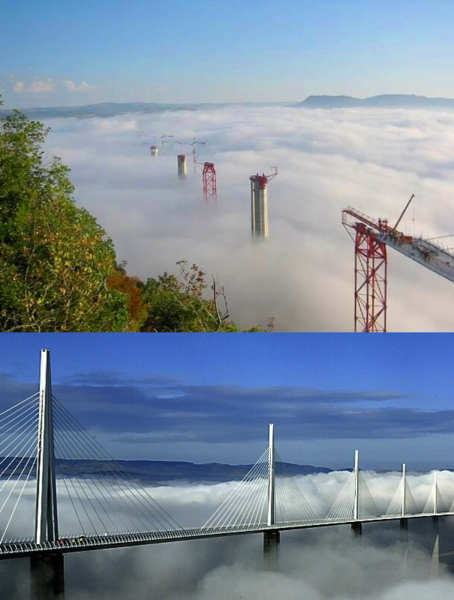 法國最詩情畫意的米洛橋 Millau viaduct,法文 Viaduc de Mil,是目前世界上最高的高架橋,從 2001 年 10 月開工建立之初就引人矚目,恍若置身蓬萊仙島般的虛無縹緲間,2004 年 12 月竣工之後,成為 21 世紀的人類空前偉大的建築奇觀「橋樑之母,也是全球最美麗、最有仙跡、最雲端的的高架橋!