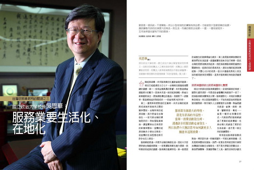 台灣的服務業相當具有優勢,因為台灣的精緻生活至少在華人地區是受肯定的,台灣雖然沒那麼多高樓大廈,可是幾十年來的民主社會,讓人感覺這裡的生活是精緻的,搭捷運的時候非常有秩序、書店、藝文活動非常豐富,生活的精緻度已經存在,美食更不用說了,所以食衣住行都有他的優勢。我們學校的外籍學生都很喜歡台灣,來了都不想回去。