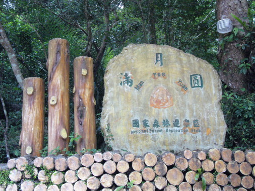 滿月園,林木繁盛,有古樸可親的感覺,花鳥蝴蝶種類很多。山區步道,雖有部份狹窄,但都有規劃整理,很好走,是個適合全家假日郊遊的好地方。我們步行當中,曾見猴子在樹稍跳躍採果。不知名的小蝴蝶停在你身上不肯走,或許牠也喜歡被拍照留念吧!