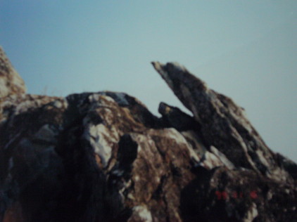 我們跪拜到山頂時,陽光己驅走夜幕,普灑在山巒樹梢間。每一個人自找一個角落坐著 。法華台上,供在座上的佛陀像,頸上掛滿花環。我們靜靜的坐在佛陀說法的寶座前,法師開始引領我們頌『心經』、並燃燈供佛。2500多年前佛陀在「大般若經」裹說〝心經〞,在此法華台為舍利佛開示什麼叫觀自在菩隆。2500多年後我們在此頌唸心經。心靈的悸動,無可比擬,只能感謝佛恩浩瀚。帶著不可思議的妙法,再次回到娑婆世界。
