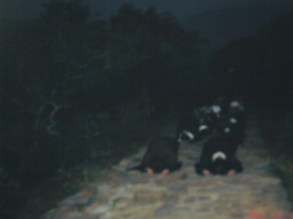 清晨四點,夜幕仍然低垂,我們已列隊在靈鷲山山腳下,四周山巒仍在夜幕中。〝南無本師釋迦牟尼佛〞,一聲清脆的引罄聲,劃破寧靜的天空,佛子們寂靜無聲的跪拜下去。法師的引罄聲,佛號唱頌聲,很規律的引領我們一步一步的往山上朝拜,顧不得地上是否有牛屎,是否髒亂,兩人一排很整齊的往山上移動,好清澈的天空,星星這麼的近,就好像在你的眼前,觸手可及。空氣如此的清新,我們正往佛陀當年講法華經的法華台前進。