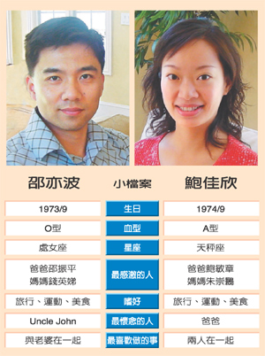 鮑佳欣邵亦波結婚4年 仍熱戀【2005/04/26 聯合報】【記者高南心】