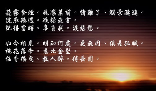 不言天長地久,卻以一景桃花開處自賞自許,也願能夜月常圓