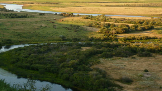 『草原深處,有時會遇見一泓彎泉極盡曲折的流過。小河的流水清澈,河中長長的水草順著水流的流勢忽左忽右輕輕擺盪,連幾顆小石子的滾動也看得清清楚楚;薄暮時分,從山腰往下眺望,那樣一條狹窄彎曲的河流映著天空的霞光,像條灰紫色的發亮的緞帶,在暗綠色的曠野上蜿蜒伸展,不知從何處起始?到何處終結?』