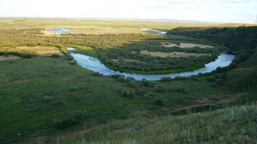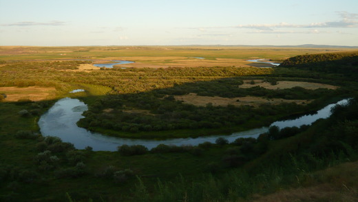 河流的彎曲也是經年累月的侵蝕作用形成,一條河流兩岸的流水速度不一樣,流水速度快的一邊衝擊力大,加上兩岸土壤的不同,受衝擊力大的形成凹岸,另一邊形成凸岸,長久下來,凹者愈凹,凸者愈凸,河流自然成為彎彎曲曲的形貌,伊敏河百轉千迴的河道則是多少萬年歲月的累積啊!