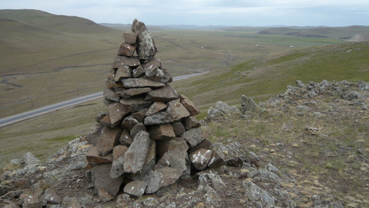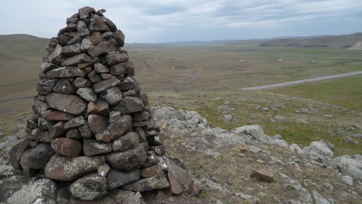 我們來到了山頂,看到山頂上祭祀山川神靈的敖包,在草原上只要地勢較高的地方都可以看到牧民用石頭或枯枝疊成的敖包,對於敖包,我們懷著敬畏的心來到周圍,大肚、小宇從小在內蒙長大,也算是半個蒙古人,而我則是戒慎恐懼的渴望瞭解草原文化,看到敖包,就像牧民看到天光一樣;這裡,風很大,風的速度直追飛奔的駿馬,在《風吹草原》歌詞中:『風吹著草原,風吹著花開,風吹著我眷念你這片熱土,悠揚我的聲,吹響我的心海。』唱出了風也是草原生活的一部份,連結了牧民的思鄉情懷。