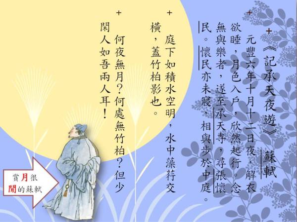 《記承天寺夜遊》:ㄊㄣˊ ㄕㄚ ㄇㄟ ㄎㄨㄣˊ(解衣欲睡的台語哦~~)都是閩南語演說啦,老師叫同學用台語唸唸看課文,結果這句名言就跑出來了 呵… …