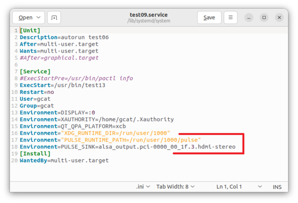 把HDMI顯示器的喇叭全名放到systemD的程序之內.