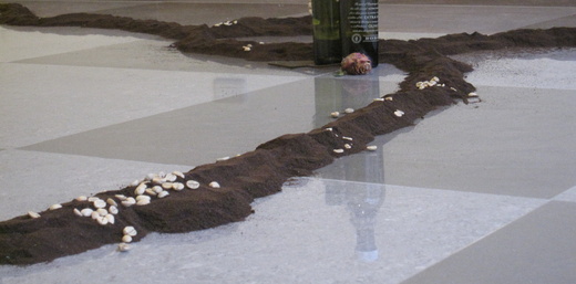 好友Johnny送來道賀的花已悄悄進入另一個生命階段,粉紅的玫瑰被染上了一層褐。花瓣上正歇息著一隻蛹蝶前身毛蟲。尼羅河,被未遇的神秘農人播下一片未經火煉的種子與一顆黑豆。蜜糖歡愉著觀賞者一同融入這河。從他的視界,這是家鄉母親之河的點點巨石。在寂靜的展場裡從背包捎來鳥鳴的呼喚,是裱框店老闆娘來電。興奮地傳達,一名游於藝的收藏者驚豔著裝裱後的【情慾之DIY】展現的自由。貼切地共鳴著不焉的直率性格。裝裱後的作品讓觀賞者在具焦後更顯大器。感謝老闆熟練的技術與專業精準的敏銳,將作品的神韻畫上了點睛之妝。
