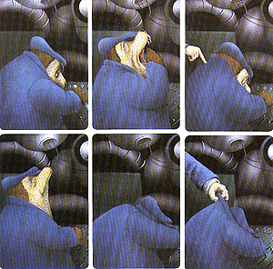 熊因為太常打瞌睡,就被開除。想不到犯錯才可以離開,才能夠脫身。熊走出工廠後,順著高速公路一直走,畫面告訴我們沒有第二條路可走。風雨交加,熊好不容易找到一家汽車旅館,趕緊走進去。沒想到櫃台的服務人員愛理不理,摸了半天才對他說:「我們是高級的汽車旅館,我們是不招待工人的,何況是一隻熊?」