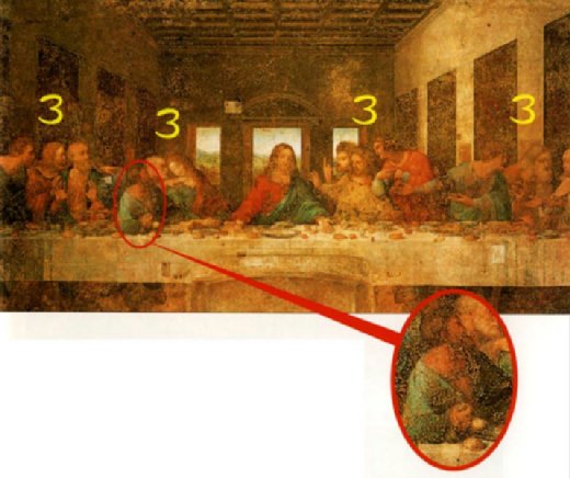 其他的細節也很可觀,例如情緒激動的彼得,他不只做出強烈的質疑動作,右手還叉著腰握住一把刀;約翰優雅帶著女性化的動作,有人懷疑達文西畫的可能是女人,在這裡藏著驚人的密碼……變化中有穩定的秩序,秩序中有強烈的變化,達文西用「細節堆積」配合「整體構圖」,給了我們意味深長的曠世傑作。