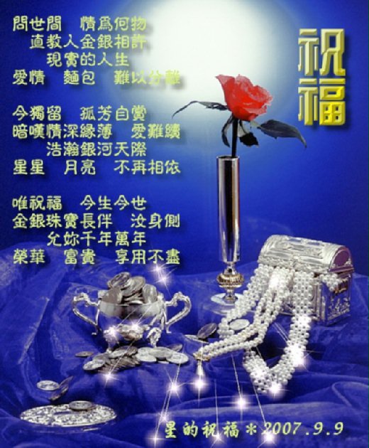 祝福 笑擁金山銀山 醉臥翡翠珠寶