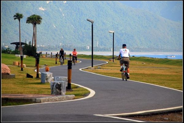 以193縣道海景和懷舊鐵道為主,沿途行經七星潭風景區,有奇萊鼻燈塔作指引,向上爬升至四八高地,至花蓮港,與海上貨輪相伴,前進北濱公園,此段可欣賞曙光橋下砂婆礑溪出海口的景緻;往南濱公園後由光華創意文化園區經舊鐵道沿台九線、木瓜溪橋,欣賞遠山曠野,最後到達鯉魚潭風景區稍作休息後可沿原路折返,或繼續探索鯉魚潭自行車道的山水美景。