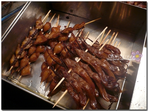 看看那色澤油亮亮的,這真的很好吃...我最愛吃鴨舌頭了,不過也不便宜,吃過一次還會吮指,然後巴望著再吃一輪,我的朋友們就會把我從攤位前拖走了。