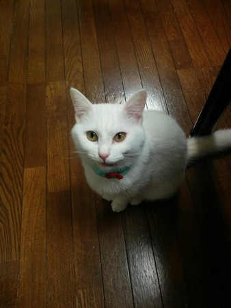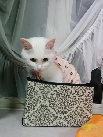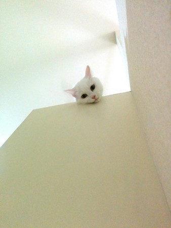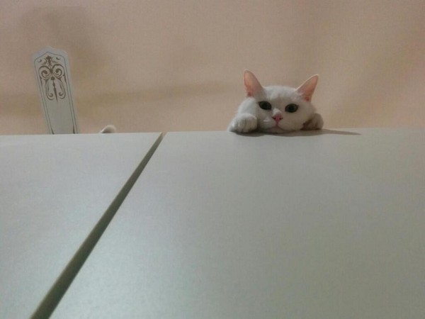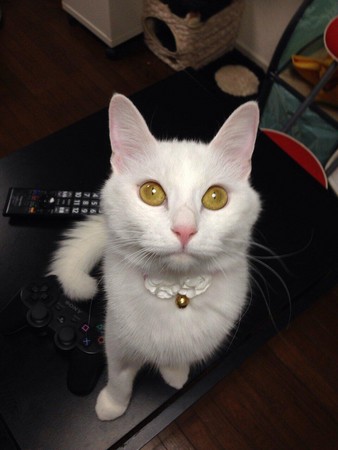 現在的ももちゃん是一隻美麗又漂亮的白貓,平常最喜歡做的事情就是偷窺主人みゃけ