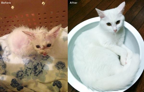 流浪貓,變成超萌白喵!