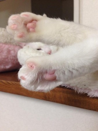 ももちゃん超可愛的粉紅貓肉墊讓人超想揉捏的。
