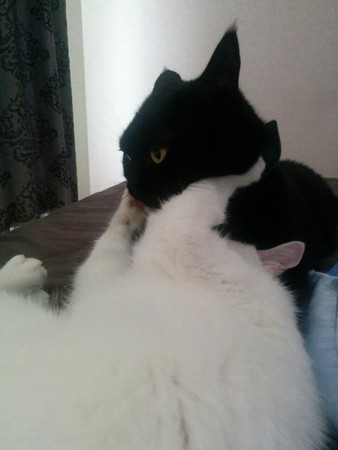平常也會和另一隻黑貓まめ太一起玩耍,兩隻貓咪感情很好