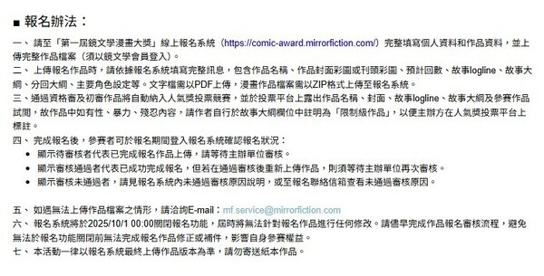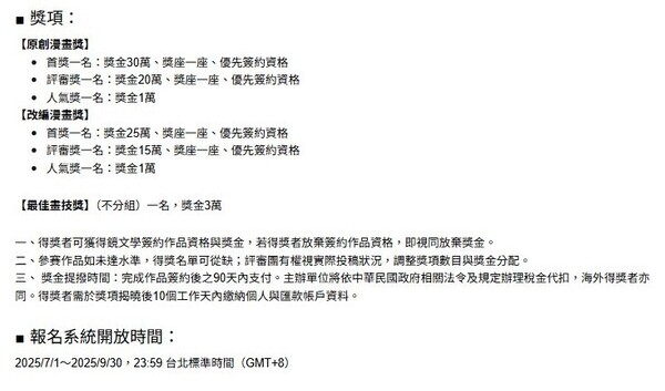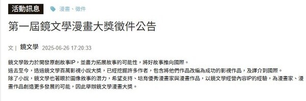 第一屆鏡文學漫畫大獎徵件公告~2025/9/30