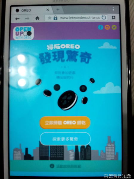 用手機或平板掃瞄QR code 進入活動網站(建議使用android系統),然後「史上第一次OREO餅乾是可以掃瞄的」,真的要拿OREO餅乾來掃瞄: