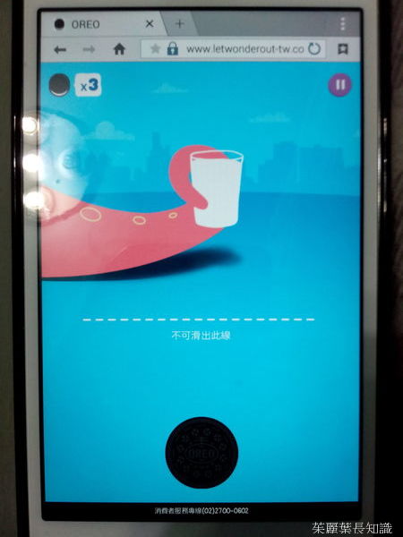 然後進入遊戲畫面,要把OREO餅乾丟到杯子裡: