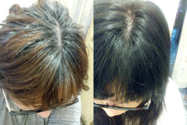 自從懷孕初期發現第一根白髮之後,就像附身一樣,甩也甩不掉,染髮也遮不住,而且只在頭頂白一塊,真難看。常常為了頂上的白髮,又要上美容院,髮長過肩之後若上美容院,那可是筆大數目,所以能夠補染白髮的專用快速染髮霜真是一大福音。
