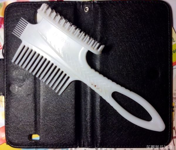 工欲善其事,必先利其器。在此要特別介紹這支白髮染髮專用梳。右邊寬面,適合髮根的大面積整染;左邊扁梳面,可將染劑延展至髮尾;上面細小梳面,可用於鬢角等細微處。以前使用的染髮霜,梳子常常是附在瓶口,短短的,不好控制,一不小心就會把染劑弄到臉上……後果可想而知……