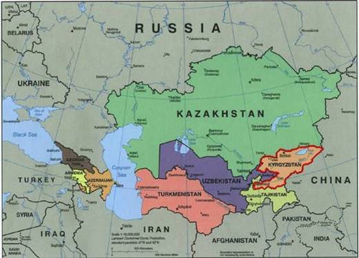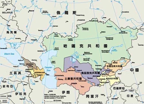 中亞五國,即哈薩克斯坦、吉爾吉斯斯坦、塔吉克斯坦、土庫曼斯坦和烏茲別克斯坦。面積相當於印度加巴基斯坦;人口約5500萬,少於土耳其。