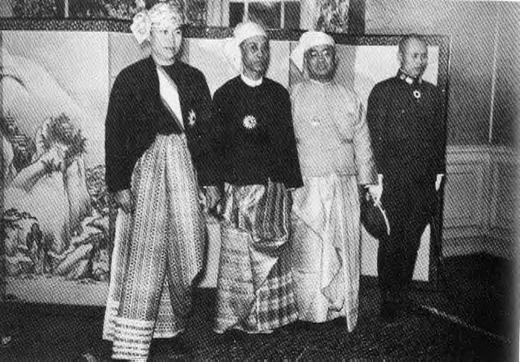 圖三: 日本的緬甸傀儡(右起第一人即翁山淑枝之父)