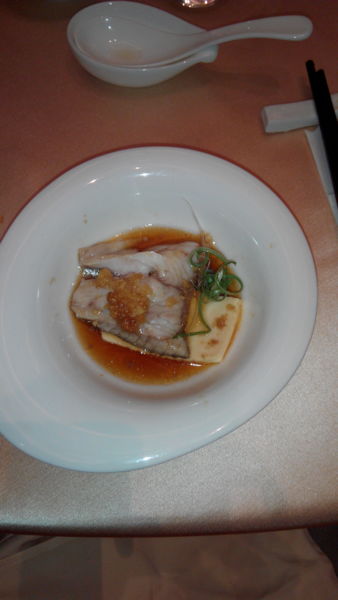 接下來是白玉蒸龍魚塊,柔軟的豆腐搭配鱘龍魚肉的爽脆,