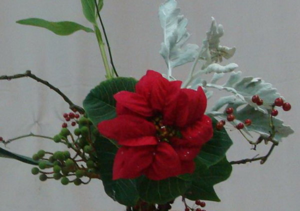 冬季花材與枝幹,就能呈現熱鬧的聖誕氣氛,聖誕紅花莖切口會流出
