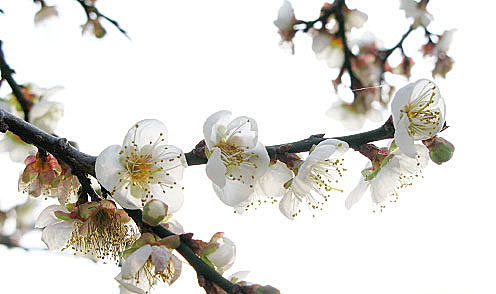 ,只見光禿蒼勁的枝幹上布滿清香小花。