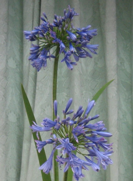 百子蓮葉色濃綠光亮,但插花上多只使用開花枝,常見藍紫