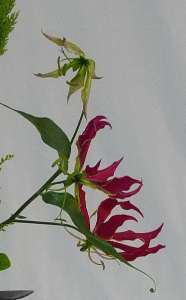 焰百合花形奇特,故可搭配異形花器使用;不論是講究意境的傳統
