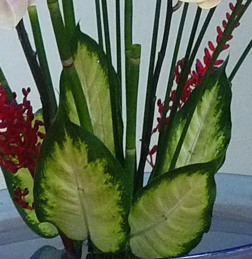 白玉葉葉色獨特,花無觀賞價值,多取單葉使用,為自由花表
