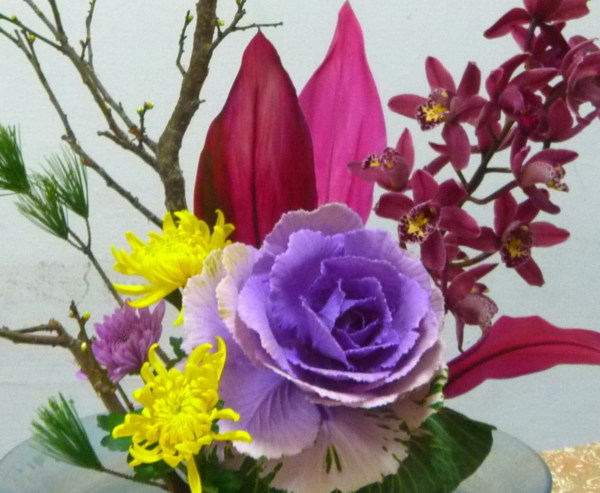 牡丹為焦點花,並以不高的葉牡丹為原則,作出高低不同的層次