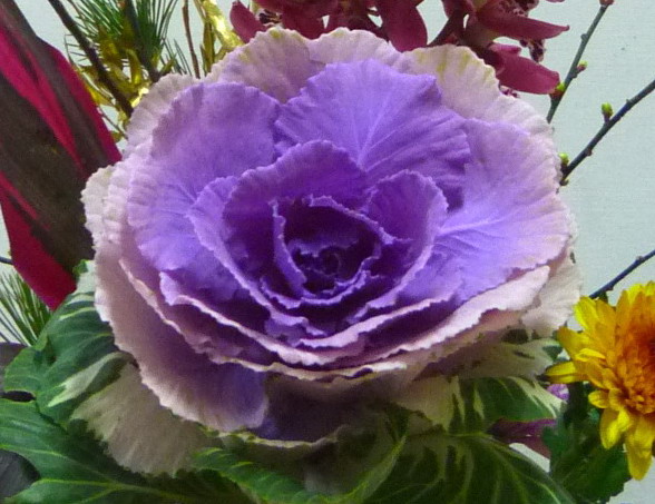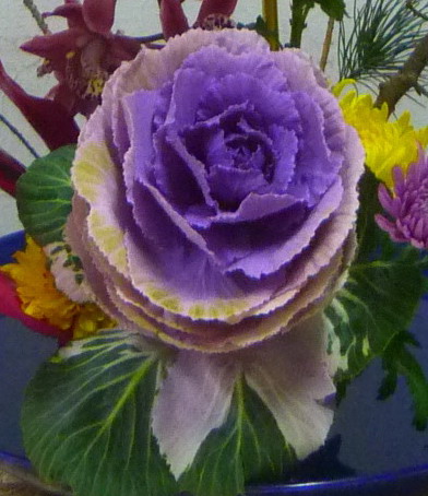 在插花時,葉牡丹因花型豐滿宜作主枝,若葉片多時可酌量去