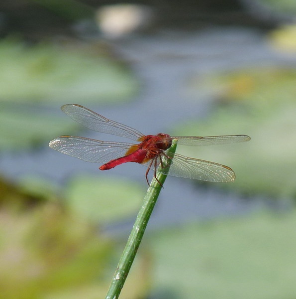 撐著美麗的花瓣,躺在池水上,而褐斑蜻蜓和侏儒蜻蜓則在水草與睡