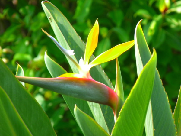 旁,天堂鳥正揚起金黃的頭冠,躲在草叢中窺探來往的遊客;